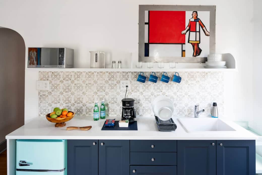Coffee machine, Cooking utensils, Kitchenette, Microwave, Refrigerator