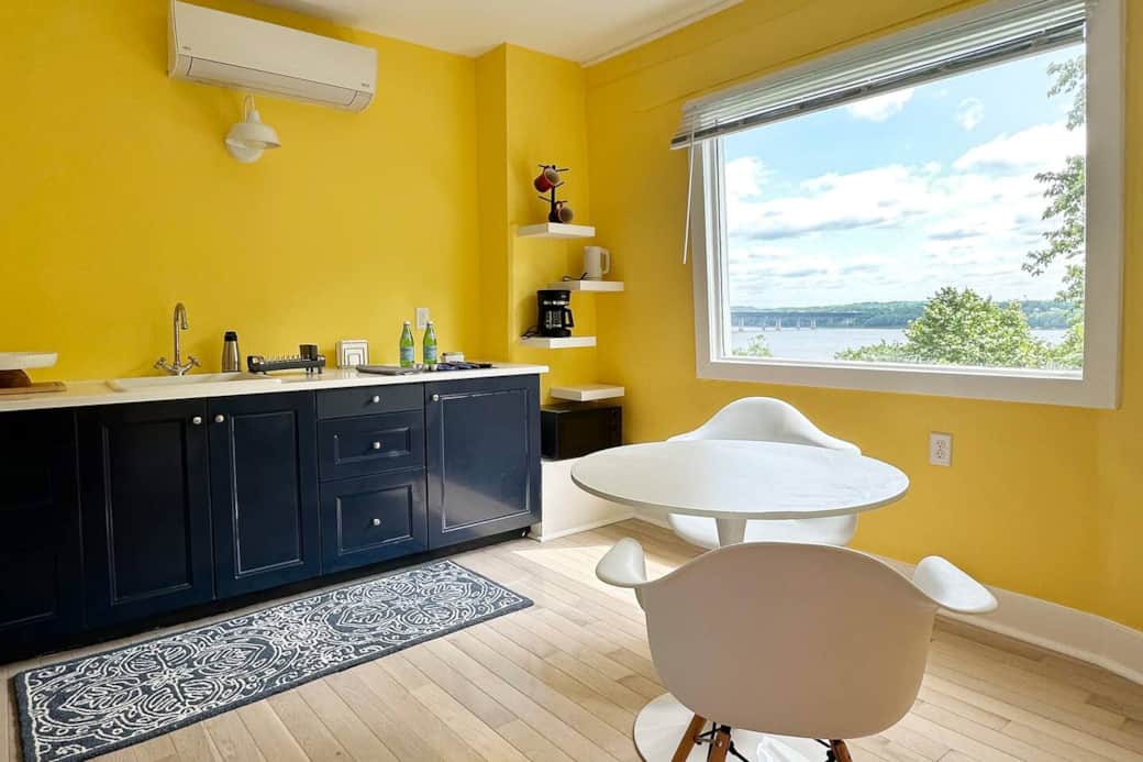 • A versatile kitchenette that provides spectacular River views and tranquility to enjoy your morning coffee, nice table and chairs